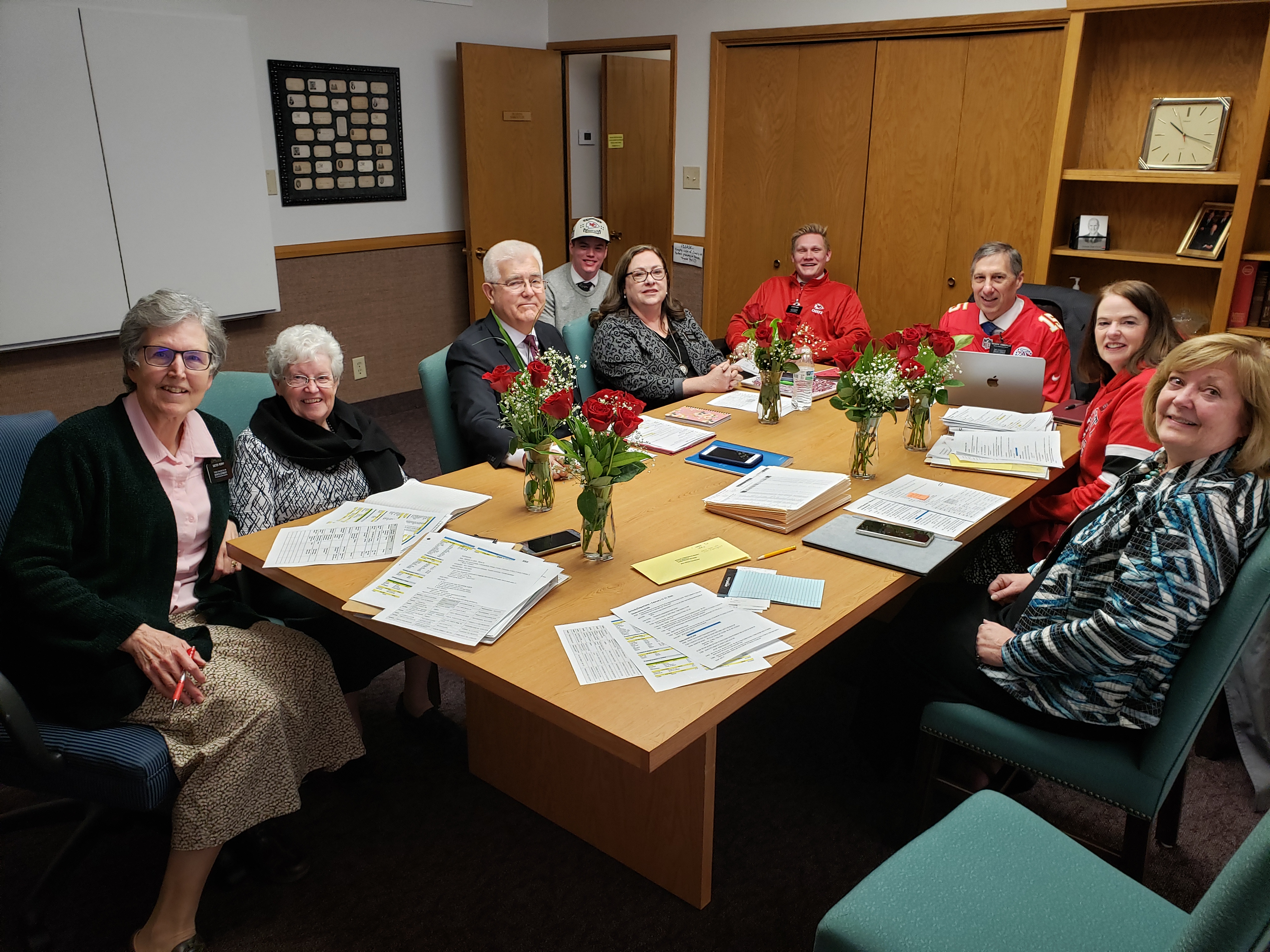 Here we all are gathered around before our three hour 😒 staff meeting. The Assistants to the President are in the background. Sister Welbern, to the right, is taking Sister Kearns' place for a few weeks while Sister Kearns awaits surgery. She will be here until she trains a replacement Sister when she arrives sometime the first week in March.